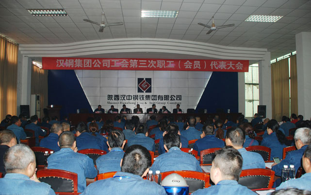 上午8:30分,大會在嘹亮的國歌聲中開幕,首先由黨委書記郭斌宣讀勉縣總工會《關于召開陜西漢中鋼鐵集團有限公司工會第三次代表大會請示的批復》及漢鋼黨委《關于三屆工會委員會候選人推選情況報告的批復》;由黨委委員、二屆工會委員會委員羅章忠作漢鋼集團公司第三次職工(會員)代表大會代表資格審查報告。隨后職工代表舉手表決通過了漢鋼集團公司第三次職工(會員)代表大會代表資格審查報告、公司第三屆工會委員會委員候選人名單、選舉辦法、計票人、監票人、總監票人名單。并以無記名投票的方式,差額選舉產生了9名漢鋼集團公司工會第三屆委員會委員,由選舉產生的9名漢鋼集團公司工會第三屆委員會委員以無記名投票的方式等額選舉產生了漢鋼集團公司工會第三屆委員會主席、副主席。